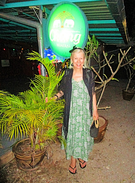 Här har jag stått många gånger, vid Chang-skylten!Middag på trevliga Ranchen.Klänning Indiska, 2022.